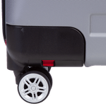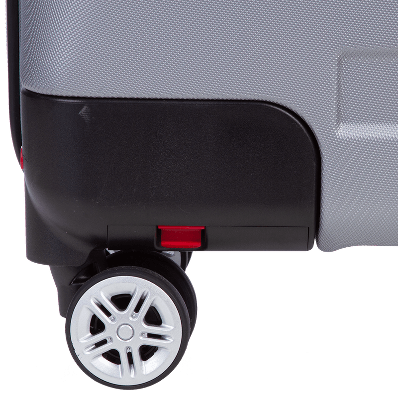 As malas contam com rodas retráteis duplas que possuem um sistema de giro de 360°, facilitando a manobrabilidade em qualquer direção. O carrinho embutido em alumínio é leve e resistente, contribuindo para a facilidade de uso. O fechamento com zíper garante que seus itens estejam sempre protegidos.