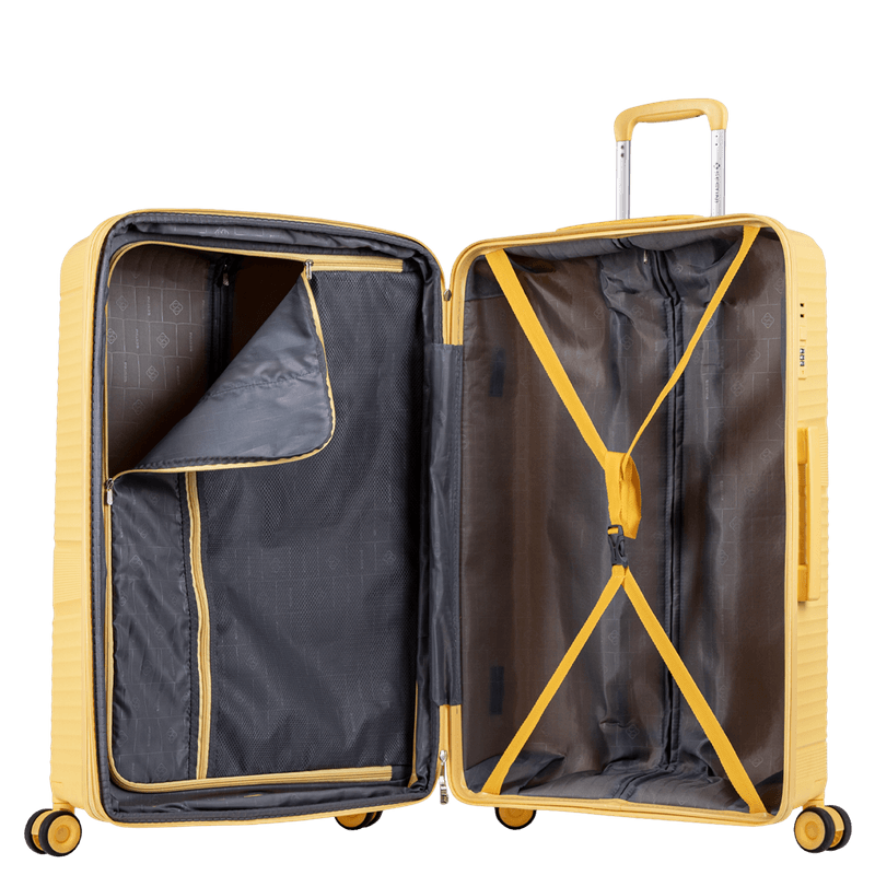 O Kit de malas da coleção PP JOY é a escolha ideal para quem busca praticidade e estilo em suas viagens. Fabricadas em polipropileno, essas malas são leves e resistentes, garantindo durabilidade e proteção para seus pertences. Cada mala conta com um cadeado fixo flat que proporciona segurança, além de um sistema expansível que permite aumentar a capacidade de armazenamento quando necessário. O elástico interno é perfeito para segurar as roupas, evitando que se movam durante o transporte. O design é complementado por um carrinho embutido e quatro rodas duplas que oferecem um sistema de giro de 360°, facilitando a locomoção em qualquer direção. A alça de mão emborrachada proporciona conforto ao carregar, enquanto a divisória interna com zíper ajuda a organizar melhor os itens. Os acessórios em cores combinando e o fechamento com zíper, além do logo em metal, conferem um toque de sofisticação ao conjunto. Este kit é ideal para quem valoriza funcionalidade e um visual moderno em suas viagens.