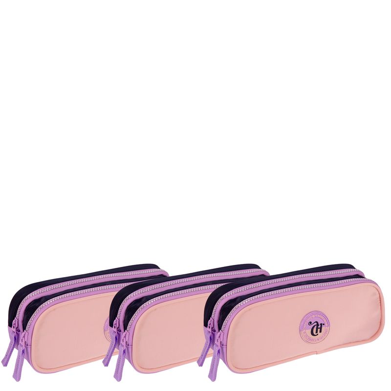O Kit 3 Estojos 2 Compartimentos Capricho Block na cor pêssego lilás é uma escolha perfeita para quem busca organização e estilo. Parte da coleção Capricho Block, este conjunto é confeccionado em poliéster, um material durável e de fácil limpeza, ideal para o uso diário.