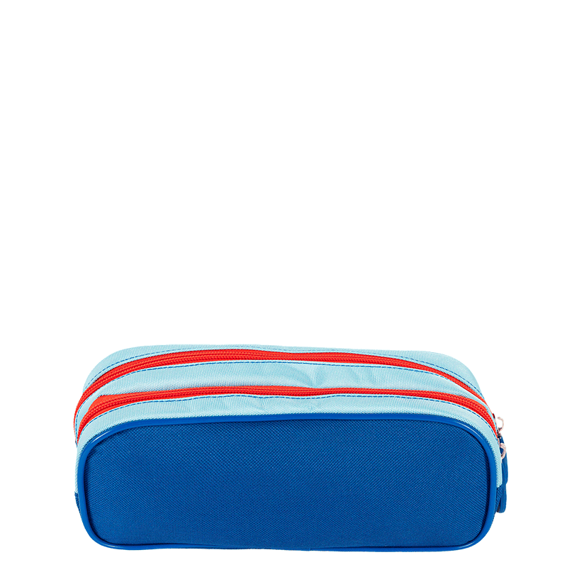 Com dois compartimentos, os estojos oferecem espaço suficiente para armazenar lápis, canetas, borrachas e outros acessórios, facilitando a organização dos materiais. O logo em borracha adiciona um detalhe especial, enquanto o painel frontal em poliéster complementa o design com um acabamento de qualidade.