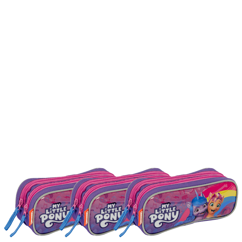 Descubra o encantador Kit com 3 estojos de 2 compartimentos da coleção My Little Pony X Confete. Cada estojo é confeccionado em poliéster de alta qualidade, garantindo durabilidade e resistência para o uso diário.