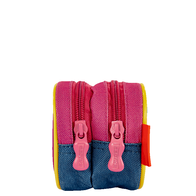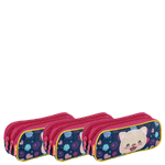 Os dois compartimentos de cada estojo permitem uma melhor organização, possibilitando separar lápis, canetas e outros materiais de forma eficiente. O logo em borracha e o painel frontal em poliéster adicionam um toque moderno e divertido ao design.