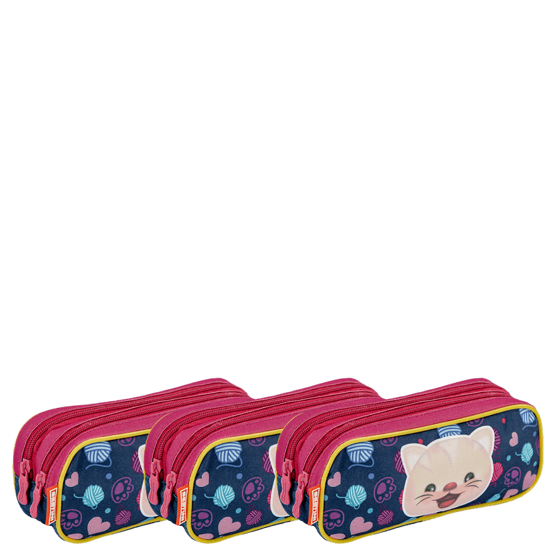 Descubra o Kit de 3 Estojos de 2 Compartimentos da coleção Sestini Kids x Cat, uma escolha perfeita para organizar os materiais escolares com estilo e praticidade. Cada estojo é confeccionado em poliéster, garantindo durabilidade e resistência para o uso diário.