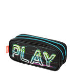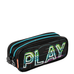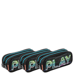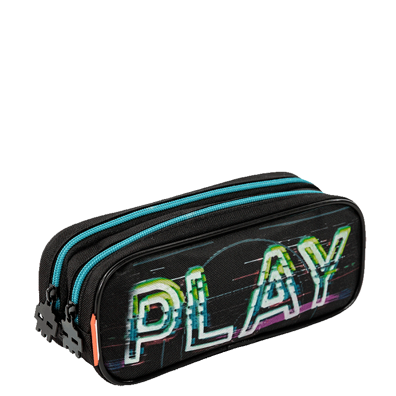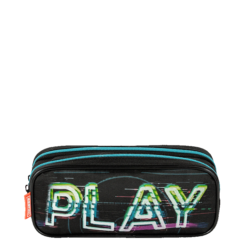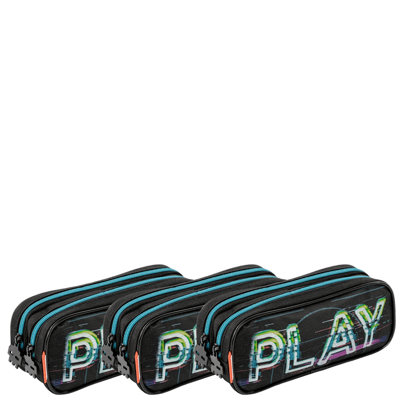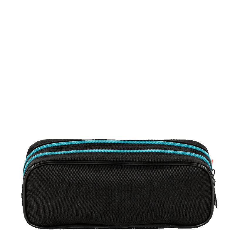 Os dois compartimentos de cada estojo oferecem espaço suficiente para guardar lápis, canetas, e outros materiais escolares ou de escritório, mantendo tudo ao seu alcance. O logo em borracha adiciona um toque moderno e descolado, enquanto o painel frontal em poliéster complementa o design com elegância.