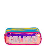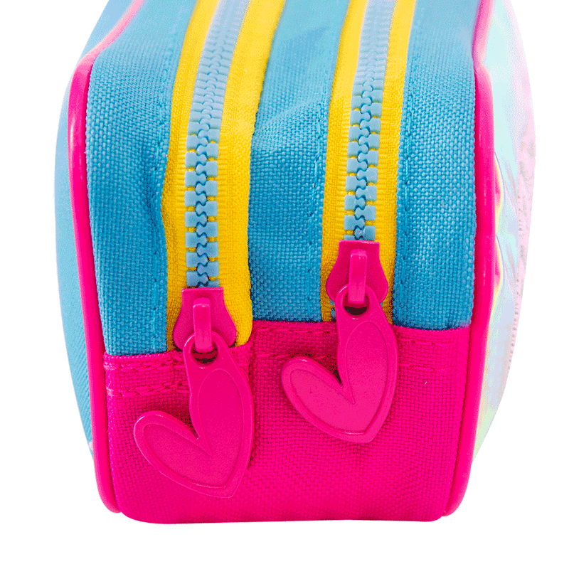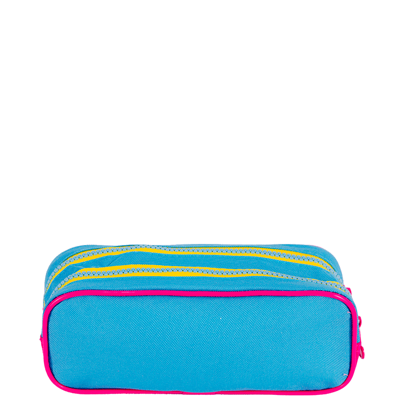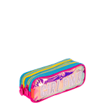 Cada estojo apresenta uma estampa exclusiva que se destaca, trazendo um toque de modernidade e personalidade. O fechamento com zíper garante a segurança dos itens armazenados, enquanto os dois compartimentos oferecem espaço suficiente para organizar canetas, lápis e outros materiais escolares ou de escritório.