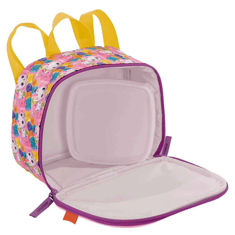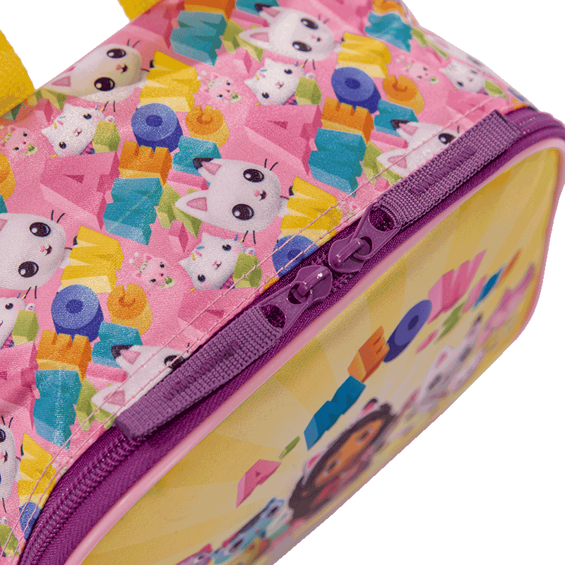 O Kit de Lancheiras Pequenas Gabby Plus Meow é uma escolha encantadora para quem busca praticidade e estilo. Parte da coleção A Casa Mágica da Gabby M Plus Meow, este conjunto é confeccionado em poliéster, um material durável e fácil de limpar, ideal para o dia a dia.