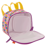 Cada lancheira possui um fechamento com zíper, garantindo que os alimentos fiquem seguros e frescos. As alças de costas em cadarço proporcionam conforto ao transportar, enquanto a alça de mão também em cadarço oferece uma opção adicional de transporte. Para facilitar a identificação, cada lancheira conta com uma tag identificador interna.