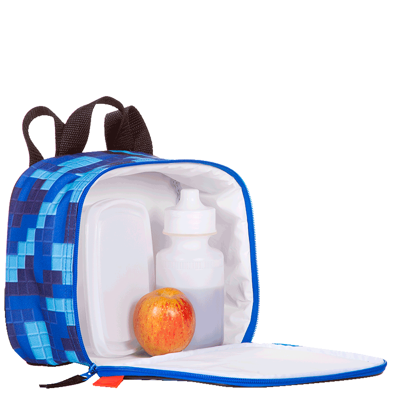 Cada lancheira possui um fechamento com zíper, que proporciona segurança ao armazenar os alimentos. As alças de costas em cadarço oferecem conforto ao transportar, enquanto a alça de mão também em cadarço facilita o manuseio. Para maior organização, as lancheiras contam com uma tag identificador interior, permitindo que você personalize cada uma delas.