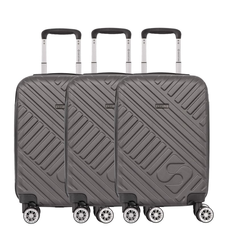 O kit de 3 malas bordo Track na cor grafite é a escolha ideal para quem busca praticidade e estilo em suas viagens. Parte da renomada Coleção Track, essas malas são confeccionadas em material ABS, que garante resistência e leveza, tornando-as perfeitas para qualquer aventura.