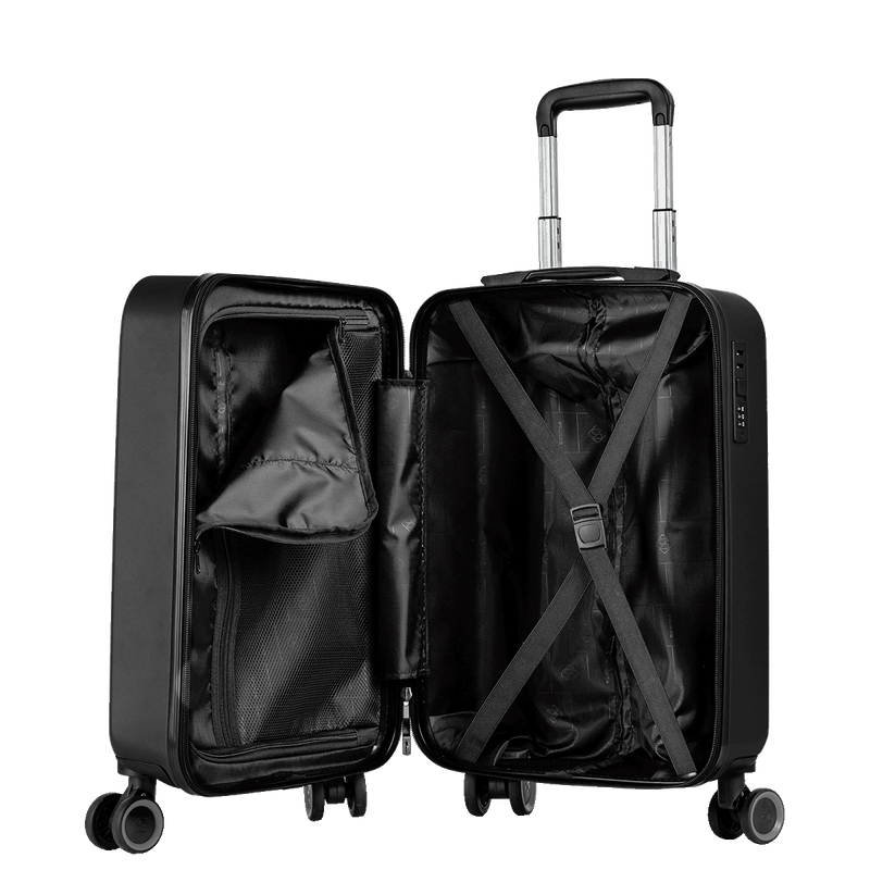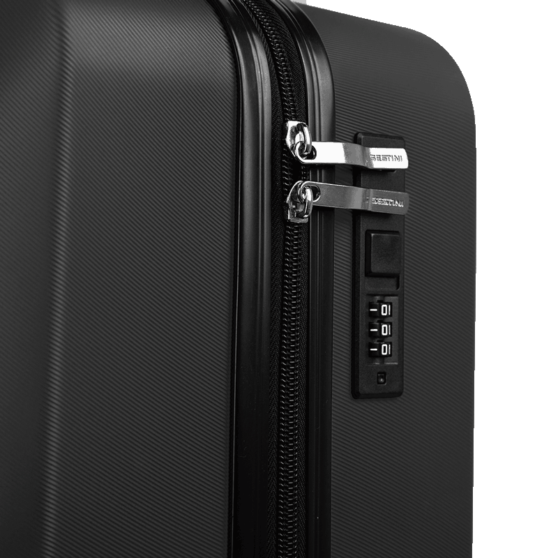 Cada mala conta com um cadeado fixo flat que proporciona segurança para os seus pertences. O interior é bem planejado, com uma divisória que possui zíper e um elástico que mantém as roupas organizadas e seguras durante o deslocamento. O amplo espaço interno permite acomodar tudo o que você precisa para a sua viagem, desde roupas até acessórios.
