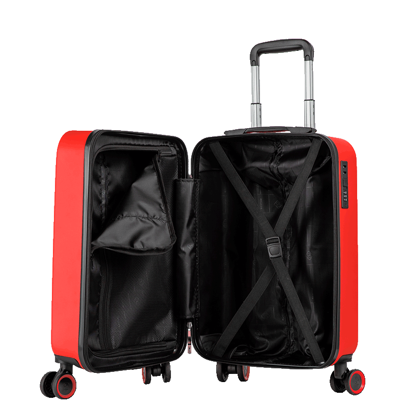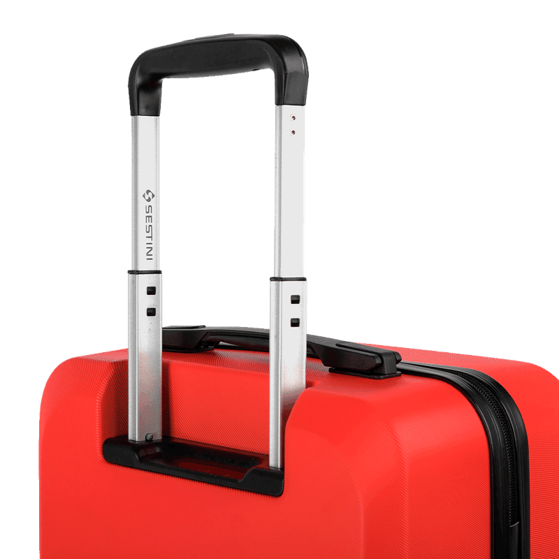 O carrinho embutido e as quatro rodas duplas com sistema de giro de 360° oferecem uma mobilidade excepcional, facilitando o deslocamento em qualquer superfície. A alça de mão emborrachada proporciona conforto ao carregar a mala, tornando a experiência de viagem ainda mais agradável.