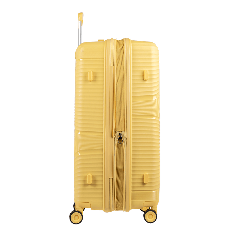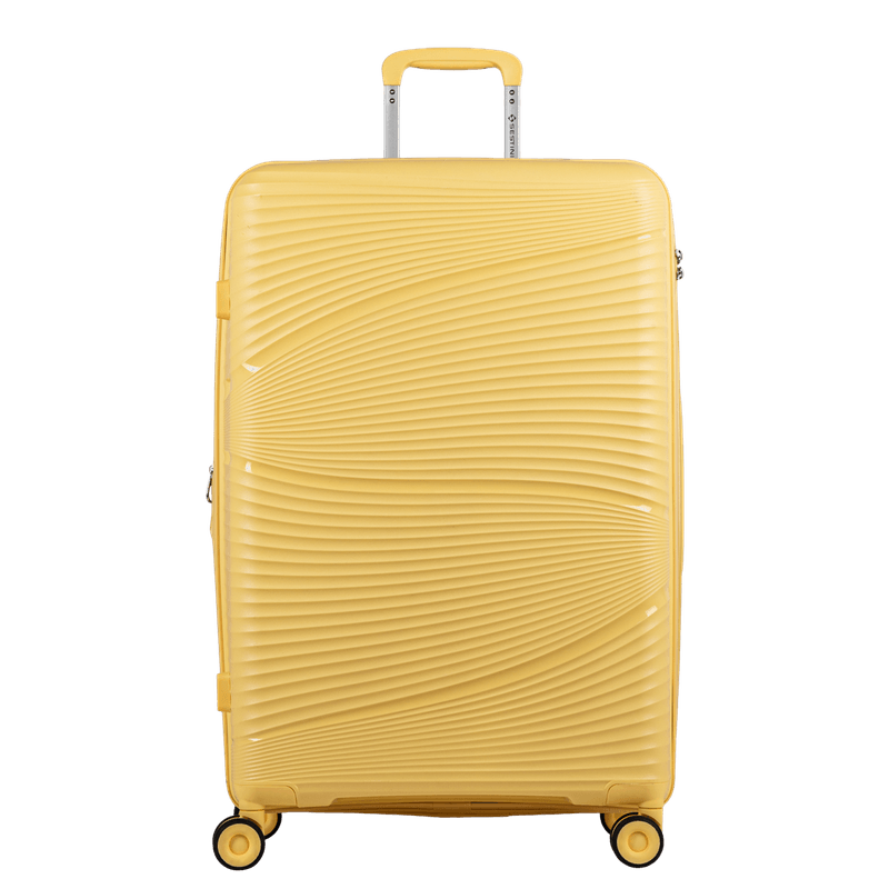 O Kit de Malas Grande, Média e Bordo da Coleção PP JOY é a escolha ideal para quem busca praticidade e estilo em suas viagens. Com um vibrante tom amarelo, essas malas são confeccionadas em polipropileno, um material resistente e leve, garantindo durabilidade e facilidade de transporte.