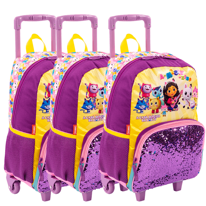 O Kit de três mochilas de rodinhas Grande Gabby Plus Meow é uma escolha encantadora para quem busca praticidade e estilo. Pertencente à coleção A Casa Mágica da Gabby M Plus Meow, cada mochila é confeccionada em poliéster, garantindo durabilidade e resistência.