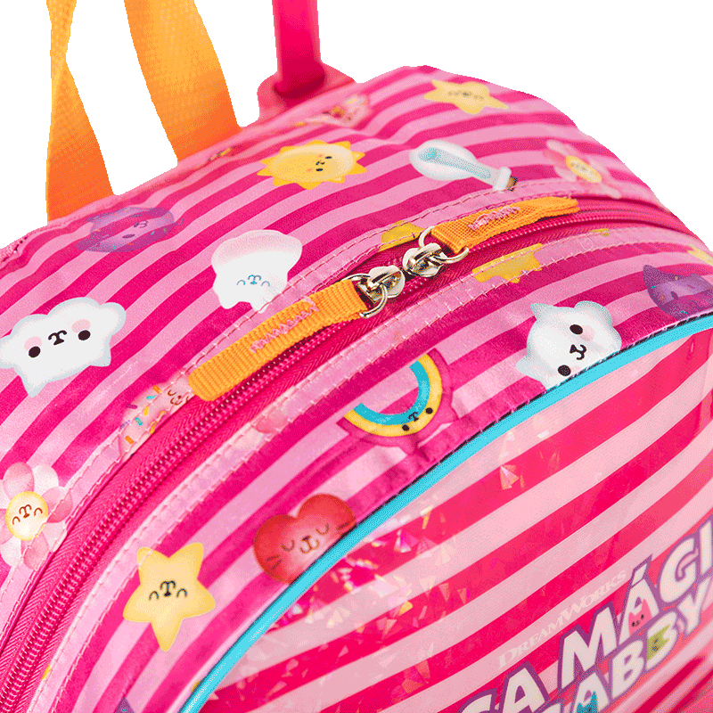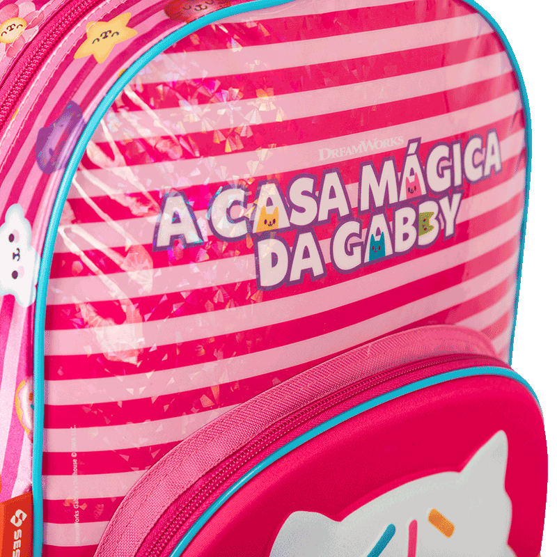 O painel frontal em PVC não só embeleza, mas também protege os desenhos e detalhes da mochila, tornando-a ainda mais atraente. Com cores vibrantes e um design encantador, o Kit de mochilas Grande Gabby x Friendship é perfeito para crianças que desejam expressar sua personalidade enquanto se organizam para a escola ou passeios.