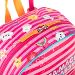 A alça de mão em cadarço oferece conforto ao carregar, enquanto o fechamento com zíper assegura que os pertences estejam sempre seguros. Cada mochila vem com uma tag identificador, permitindo que você personalize e identifique facilmente sua mochila. O pé de apoio garante estabilidade quando a mochila está em pé, e a aplicação em pelúcia traz um toque lúdico e divertido ao visual.