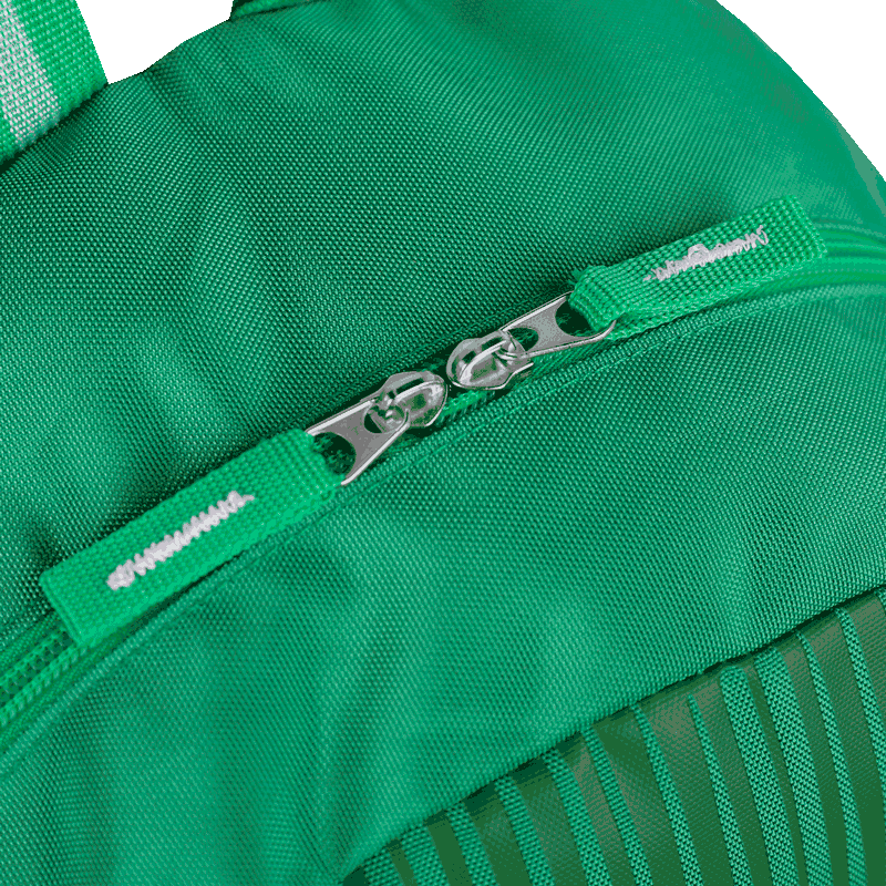 Cada mochila conta com alças de costas espumadas e reguláveis, proporcionando conforto ao carregar, além de uma alça de mão em cadarço que facilita o transporte. O design é complementado pelo logo em borracha, que confere um toque moderno e autêntico.