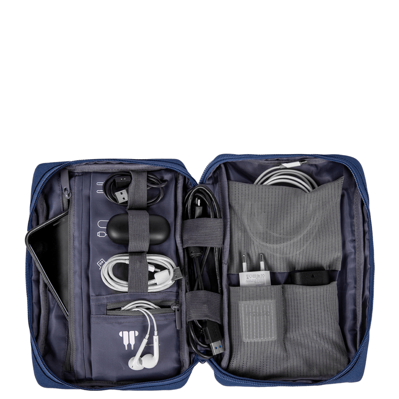 Cada necessaire possui um design inteligente, com divisórias internas que facilitam a organização dos cabos e acessórios. O bolso frontal com zíper é ideal para armazenar itens menores, garantindo que tudo fique à mão quando necessário. Além disso, os elásticos para cabos ajudam a manter os fios organizados e livres de emaranhados.