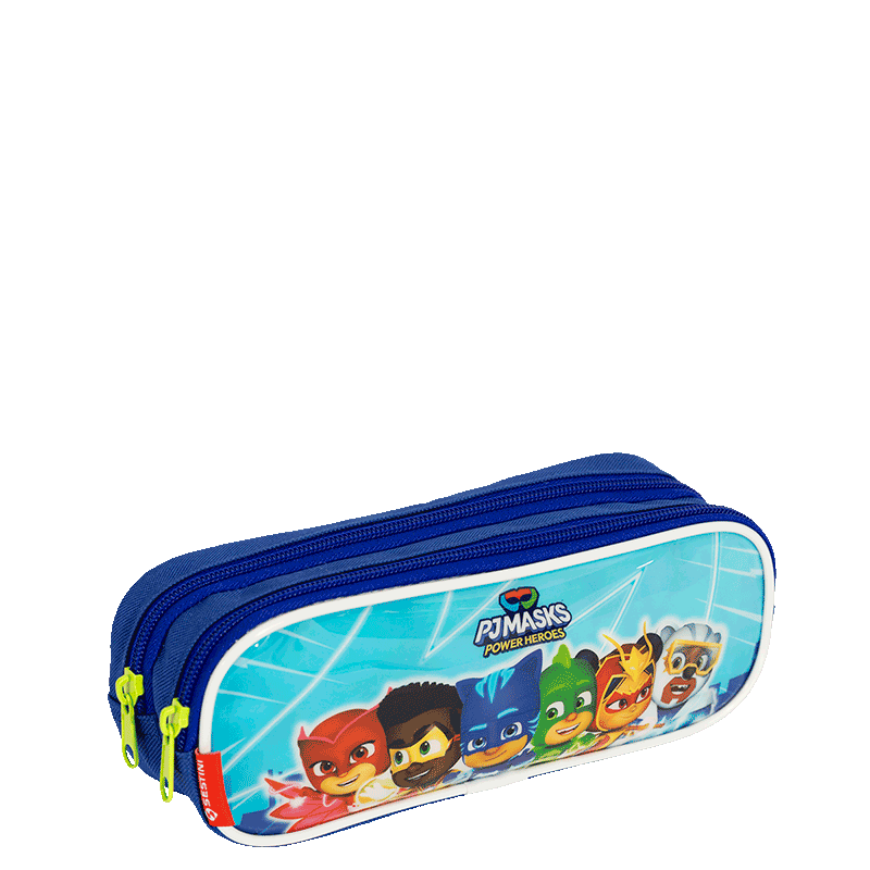 Cada estojo possui dois compartimentos, permitindo uma organização prática e eficiente dos materiais escolares. O painel frontal em PVC exibe uma estampa exclusiva que traz à vida os personagens da coleção PJ Masks, tornando o momento de estudar ainda mais divertido.