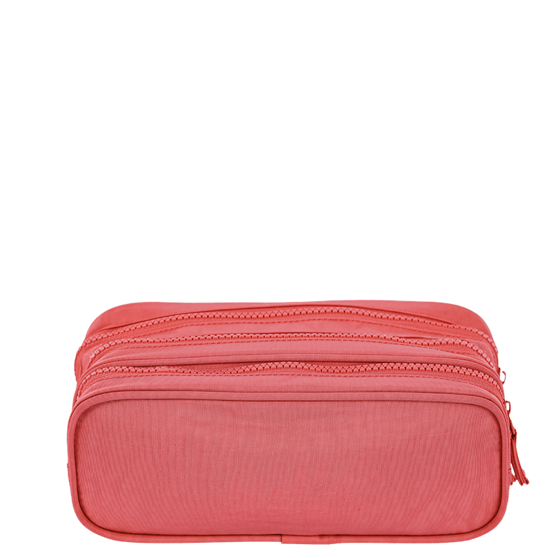 Cada estojo possui um fechamento com zíper, proporcionando segurança para os itens armazenados. Com três compartimentos, é possível organizar diversos objetos de forma prática e eficiente, facilitando o acesso ao que você precisa. O design retangular é moderno e funcional, ideal para uso escolar ou profissional.