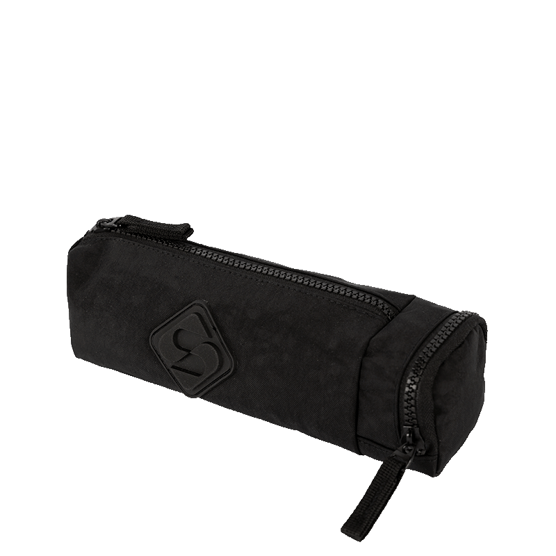 Cada estojo possui um bolso externo com zíper, proporcionando um espaço extra para organizar pequenos itens de forma segura. O fechamento com zíper é eficiente, permitindo fácil acesso ao conteúdo. Além disso, o logo em borracha confere um toque moderno e sofisticado ao design.