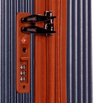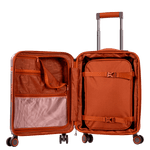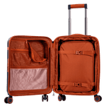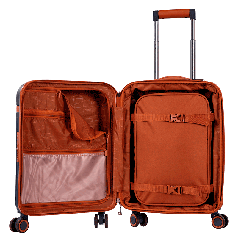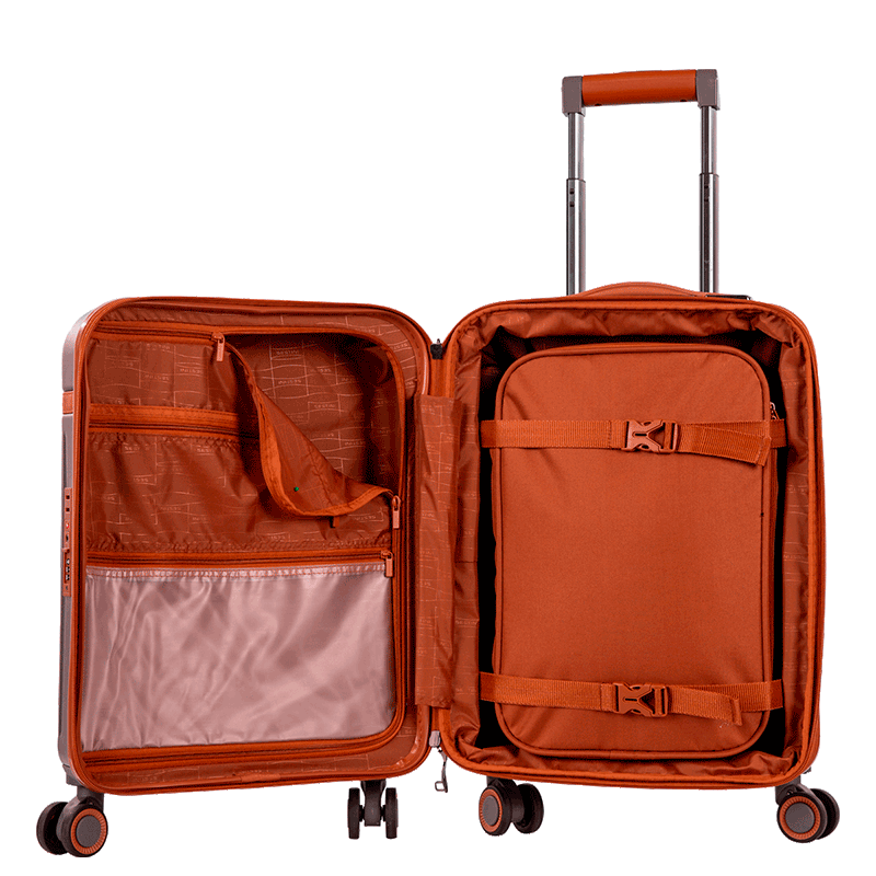 O carrinho embutido em alumínio é leve e resistente, contribuindo para a durabilidade do produto. Para maior conveniência, a mala possui um bolso interno em PVC expansível, ideal para armazenar pequenos objetos. O fechamento com zíper garante que tudo fique seguro e no lugar durante a viagem.
