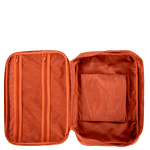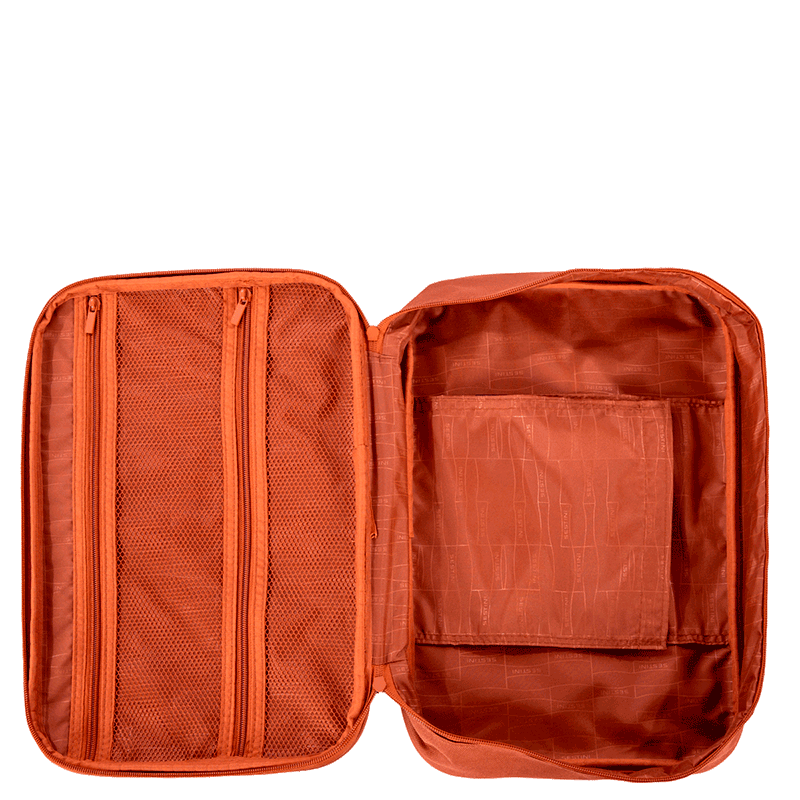 A mala conta com uma alça de mão retrátil em PVC, que facilita o manuseio e o transporte. Internamente, há uma divisória com zíper que ajuda a organizar seus itens de forma eficiente. Além disso, o organizador interno é removível, permitindo que você adapte o espaço de acordo com suas necessidades.