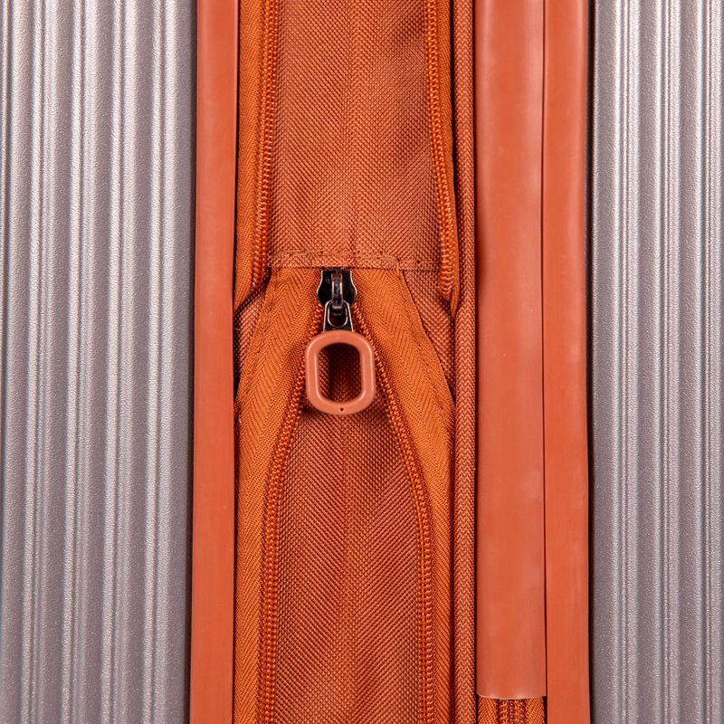 O carrinho embutido em alumínio é robusto e leve, contribuindo para a durabilidade do produto. Além disso, a mala possui um bolso interno em PVC expansível, ideal para armazenar itens que precisam de fácil acesso. O fechamento com zíper garante que tudo fique seguro durante a viagem.