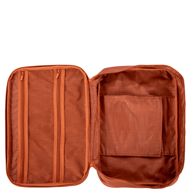 A alça de mão retrátil em PVC é confortável e facilita o manuseio, enquanto a divisória interna com zíper ajuda a organizar seus itens de forma eficiente. Para maior versatilidade, a mala conta com um organizador interno removível, que permite que você adapte o espaço de acordo com suas necessidades.