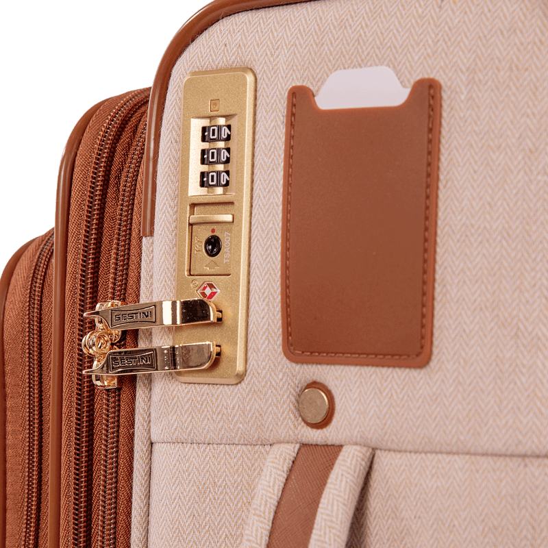 Com um design moderno, a mala conta com um cadeado TSA flat com segredo dourado, proporcionando segurança para seus pertences. Suas quatro rodas duplas possuem um sistema de giro 360°, permitindo uma movimentação suave e ágil em qualquer direção.