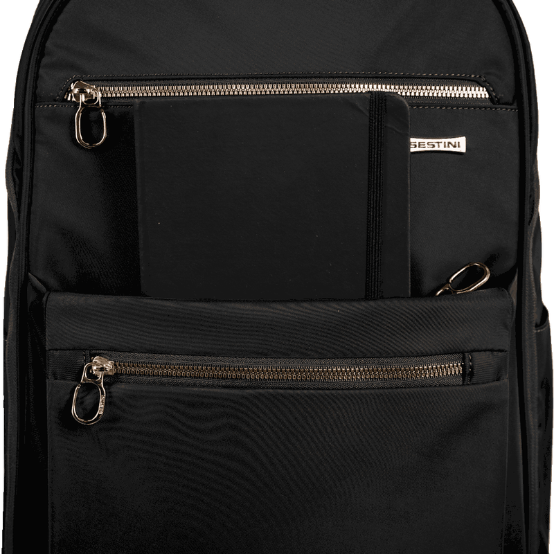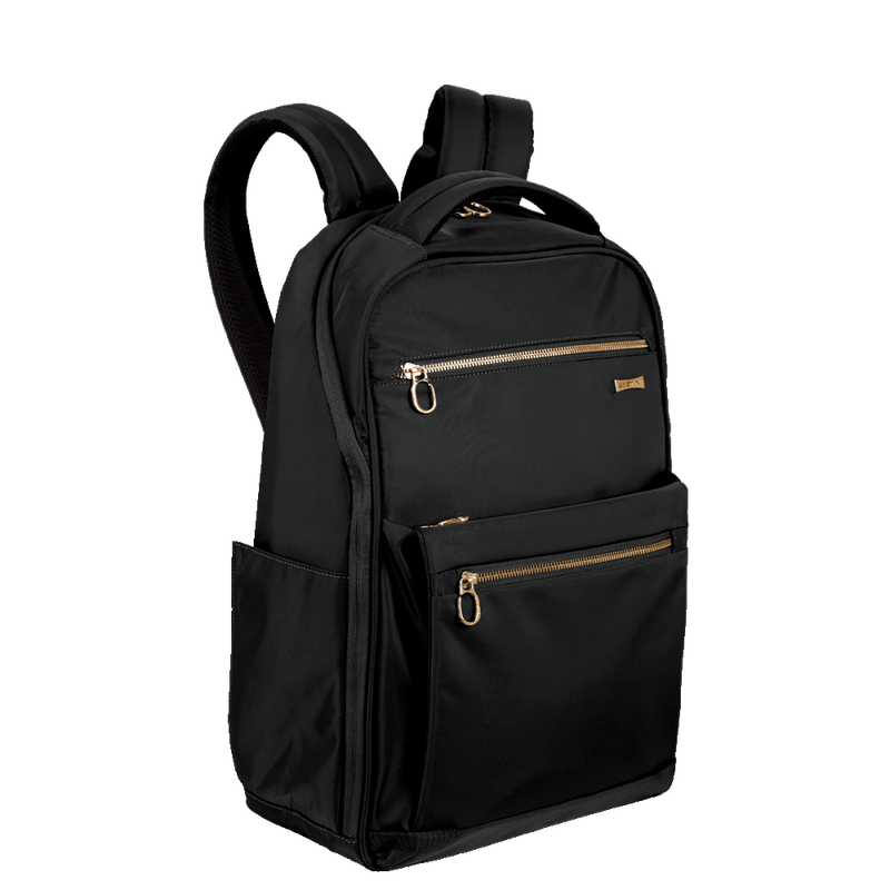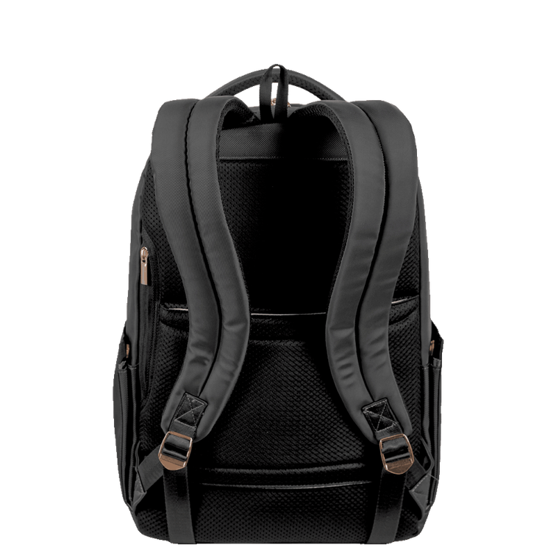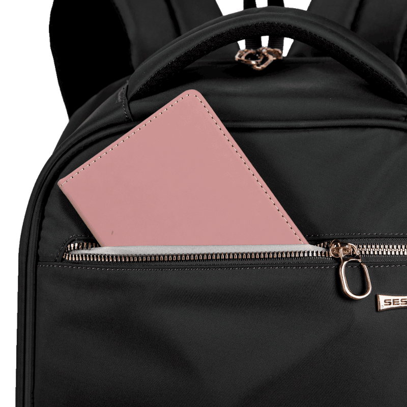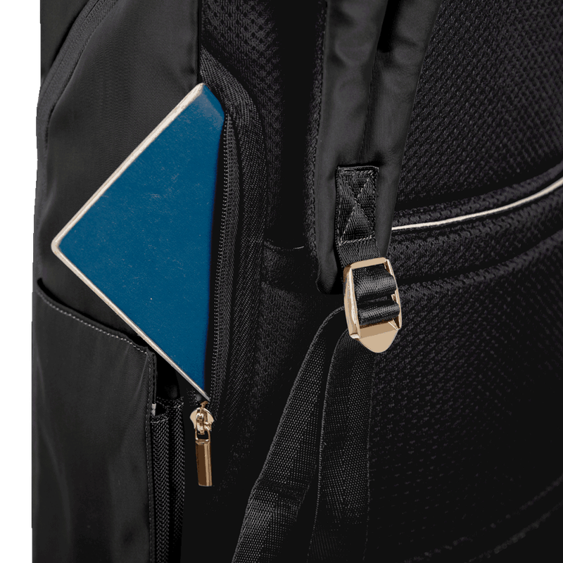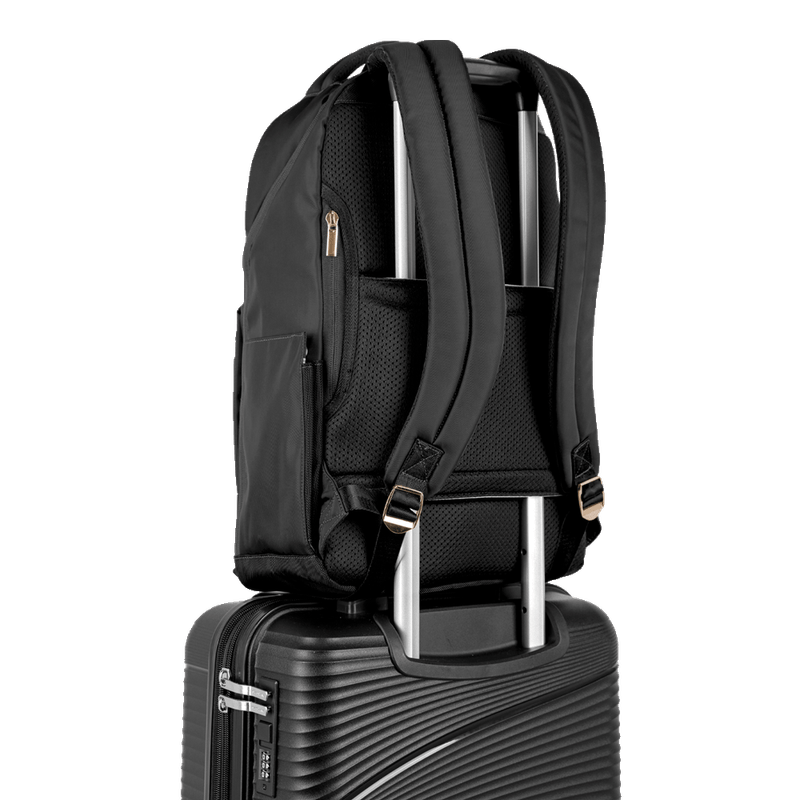 Desperte sua elegância com a Mochila Elegance. Projetada para a mulher contemporânea, seu design na clássica cor preta, proporciona conforto com alças e costas acolchoadas, enquanto a alça carona permite o encaixe perfeito da mochila no carrinho da mala durante viagens e passeios. O bolso discreto nas costas é ideal para armazenar itens essenciais que demandam maior segurança ao longo de toda a jornada. Equipada com proteção acolchoada para acomodar um notebook de 15", além de puxadores com trava antifurto, essa mochila se adapta a rotinas movimentadas. E além dos dois compartimentos espaçosos para levar todos os pertences primordiais da rotina executiva, também apresenta bolsos frontais e laterais para organizar pequenos objetos, tornando-a a escolha ideal para mulheres que apreciam estilo aliado à praticidade.